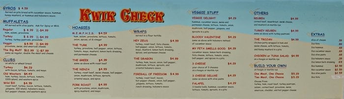 American, swiss, provolone, mayonnaise, mustard, Italian spices, lettuce, tomatoes, and onions on wheat or white hoagie or marble rye bread.